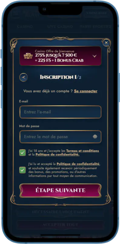 L’inscription sur Rich Royal Casino est richroyalquement valable pour les joueurs français ayant plus de 18 ans et disposant de tous leurs documents personnels valides. La procédure de création est la même peu importe la version de connexion que vous utilisez (site web ou application mobile). Veuillez suivre ce guide pour parvenir à vous ouvrir un compte Rich Royal Casino en quelques minutes.