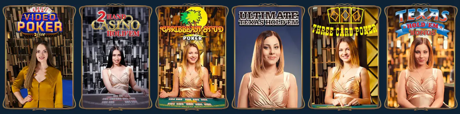 Les amateurs français de Poker seront satisfaits sur notre interface RichRoyal Casino Jeu. En effet, nous disposons de plusieurs types de Poker et chacun d’eux dispose de ses propres caractéristiques et options de mises. Primo, nous avons le jeu de hasard Texas Hold’em qui est la variante la plus jouée au monde. Chaque joueur a 2 cartes privées et 5 cartes communes. Secundo, sur RichRoyal Casino Jeu, nous avons le jeu poker Omaha ou chaque joueur a 4 cartes privées. Nous disposons de plusieurs autres modèles de jeux poker. Sur notre interface, ces différents jeux sont accompagnés de règles que vous devez lire avant de commencer une partie. Les exemples de jeux Poker sur notre interface sont les suivants: